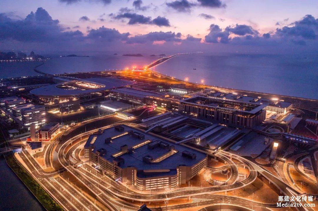 大橋香港段和東人工島部分燈光已經(jīng)亮起,璀璨的橋面在夜色中伸延,和遠(yuǎn)處已經(jīng)亮燈的主橋互相輝映。而香港、澳門和珠海,也因?yàn)檫@段蜿蜒璀璨的燈光,更緊密地聯(lián)系在一起。