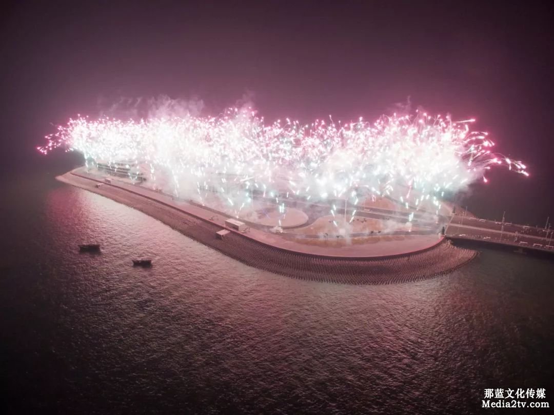 2017 年 12 月 31 日,港珠澳大橋全線亮燈,標(biāo)志著全線供電照明系統(tǒng)施工圓滿完成,意味著港珠澳大橋主體工程已經(jīng)具備通車條件。亮燈儀式上,大橋東人工島四周燃放起壯麗的煙花。