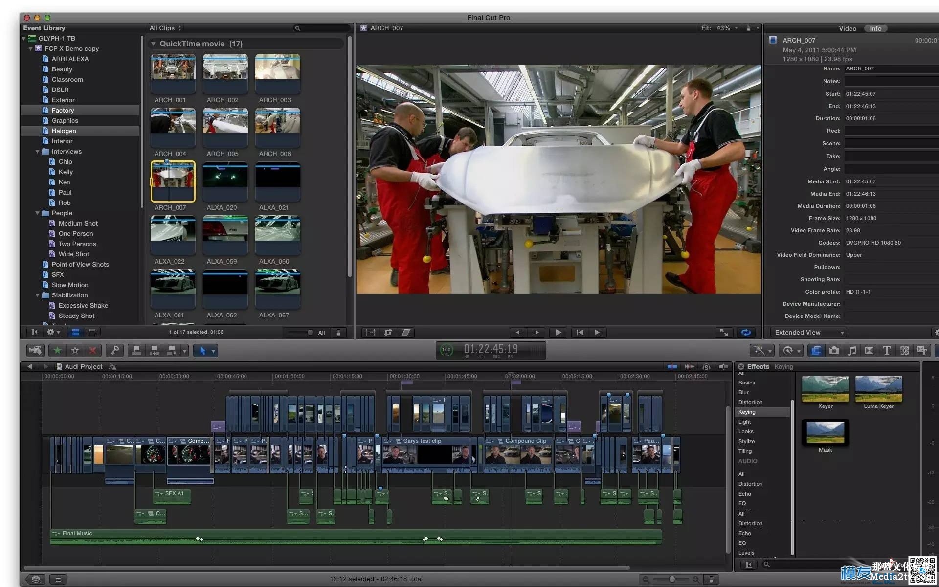 Final Cut Pro X為原生64位軟件,依據(jù)Cocoa編寫,支撐多路多中心處理器,支撐GPU加快,支撐后臺烘托,可修改從標(biāo)清到5K的各種分辨率視頻,ColorSync辦理的顏色流水線則可確保全片顏色的一致性。