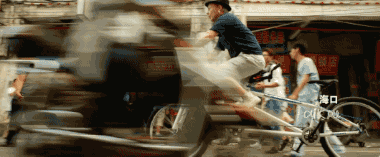 側面跟拍人物追逐的場面時,人物在畫面中的位置不變,畫面中前后景快速變化,能夠制造緊張的情緒。